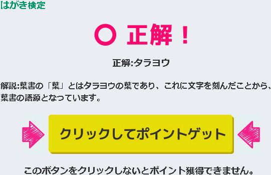 Q「はがき(葉書)」の語源は、何の葉に文字を刻んだことに由来する?