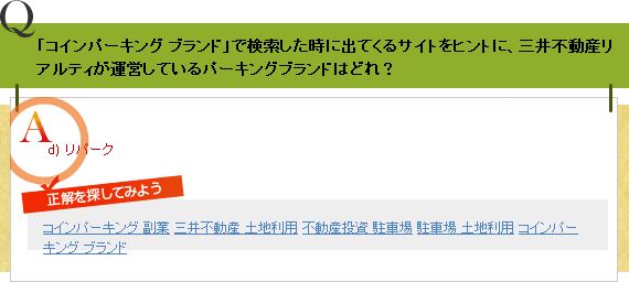 Q「コインパーキング ブランド」で検索した時に出てくるサイトをヒントに、三井不動産リアルティが運営しているパーキングブランドはどれ?