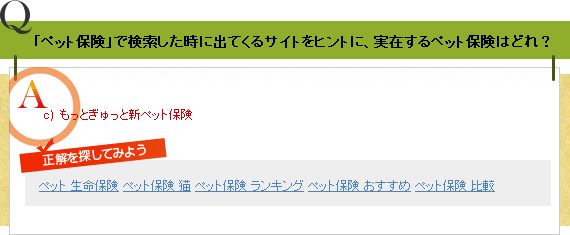 Q「ペット保険」で検索した時に出てくるサイトをヒントに、実在するペット保険はどれ?