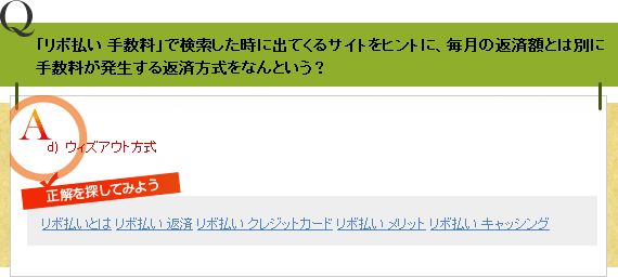 Q「リボ払い 手数料」で検索した時に出てくるサイトをヒントに、毎月の返済額とは別に手数料が発生する返済方式をなんという?
