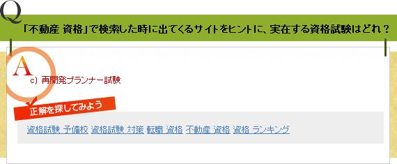 Q「不動産 資格」で検索した時に出てくるサイトをヒントに、実在する資格試験はどれ?