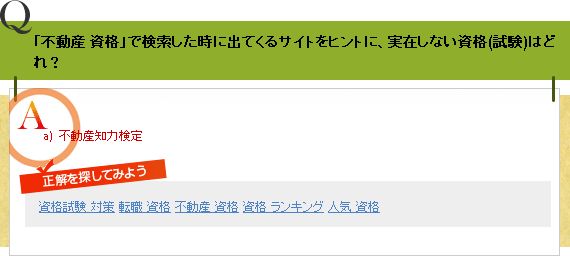 Q「不動産 資格」で検索した時に出てくるサイトをヒントに、実在しない資格(試験)はどれ?