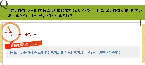 Q「楽天証券 ツール」で検索した時に出てくるサイトをヒントに、楽天証券が提供しているアルタイムトレーディングツールどれ?