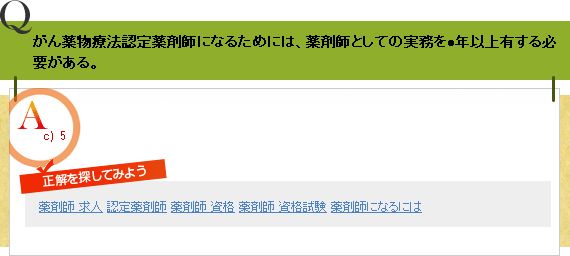Qがん薬物療法認定薬剤師になるためには、薬剤師としての実務を●年以上有する必要がある。