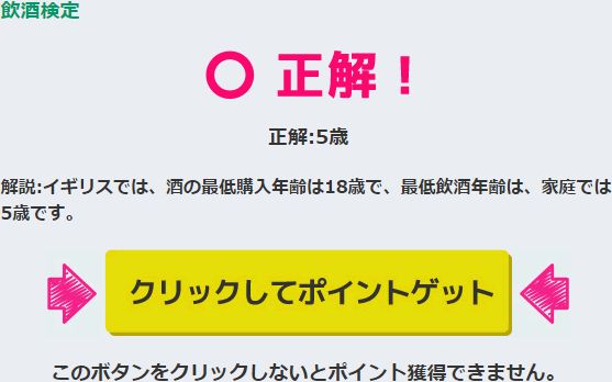 A『5歳』 解説:イギリスでは、酒の最低購入年齢は18歳で、最低飲酒年齢は、家庭では5歳です。