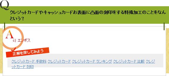 Qクレジットカードやキャッシュカードお表面に凸面の刻印をする特殊加工のことをなんという?