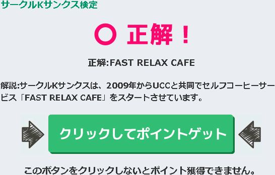 A『FAST RELAX CAFE』 解説:サークルKサンクスは、2009年からUCCと共同でセルフコーヒーサービス「FAST RELAX CAFE」をスタートさせています。