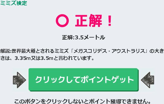 A『3.5メートル』 解説:世界最大種とされるミミズ「メガスコリデス・アウストラリス」の大きさは、3.35m又は3.5mと言われています。
