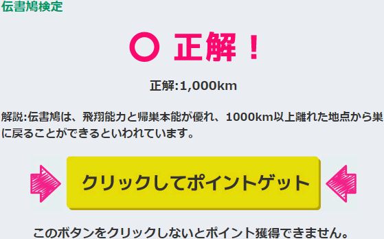 A『1,000km』 解説:伝書鳩は、飛翔能力と帰巣本能が優れ、1000km以上離れた地点から巣に戻ることができるといわれています。
