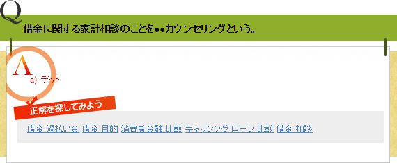 Q借金に関する家計相談のことを●●カウンセリングという。