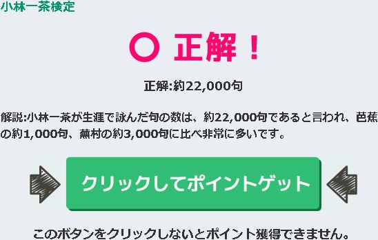 A『約22,000句』 解説:小林一茶が生涯で詠んだ句の数は、約22,000句であると言われ、芭蕉の約1,000句、蕪村の約3,000句に比べ非常に多いです。