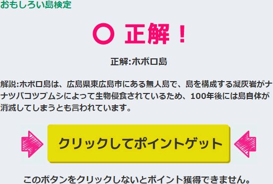 A『ホボロ島』 解説:ホボロ島は、広島県東広島市にある無人島で、島を構成する凝灰岩がナナツバコツブムシによって生物侵食されているため、100年後には島自体が消滅してしまうとも言われています。