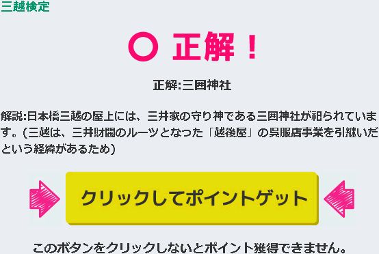 A『三囲神社』 解説:日本橋三越の屋上には、三井家の守り神である三囲神社が祀られています。(三越は、三井財閥のルーツとなった「越後屋」の呉服店事業を引継いだという経緯があるため)