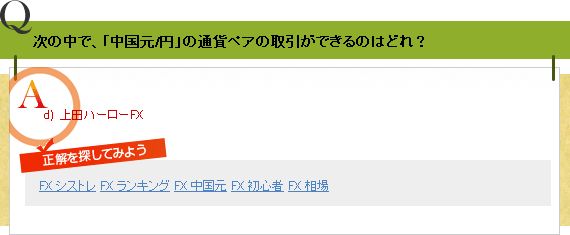 Q次の中で、「中国元/円」の通貨ペアの取引ができるのはどれ?