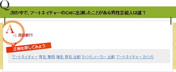 Q次の中で、アートネイチャーのCMに出演したことがある男性芸能人は誰?