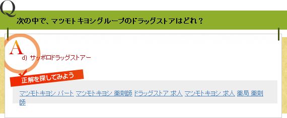 Q次の中で、マツモトキヨシグループのドラッグストアはどれ?