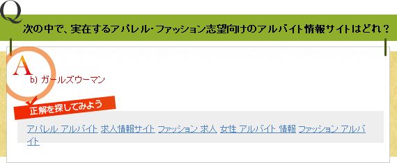 Q次の中で、実在するアパレル・ファッション志望向けのアルバイト情報サイトはどれ?