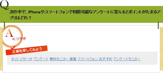 Q次の中で、iPhoneやスマートフォンで利用可能なアンケートに答えるとポイントがたまるアプリはどれ?