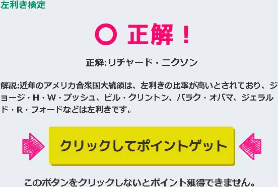 A『リチャード・ニクソン』 解説:近年のアメリカ合衆国大統領は、左利きの比率が高いとされており、ジョージ・H・W・ブッシュ、ビル・クリントン、バラク・オバマ、ジェラルド・R・フォードなどは左利きです。