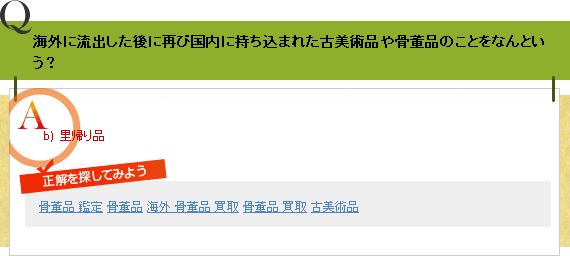Q海外に流出した後に再び国内に持ち込まれた古美術品や骨董品のことをなんという?