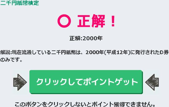 A『2000年』 解説:現在流通している二千円紙幣は、2000年(平成12年)に発行されたD券のみです。