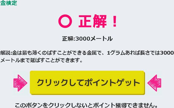 A『3000メートル』 解説:金は最も薄くのばすことができる金属で、1グラムあれば長さでは3000メートルまで延ばすことができます。