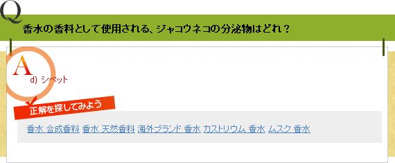 strong>Q香水の香料として使用される、ジャコウネコの分泌物はどれ?